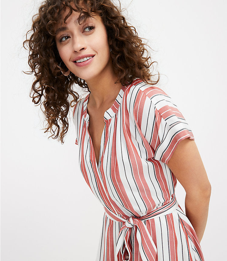 Tailored polish doesn't come easier or prettier than this fluid and flowy shirtdress - belted for extra flattering flair - and it's just what our closets need now and forever. Tab-collared split neck. Button front. Cap dolman sleeves. Waist ties.